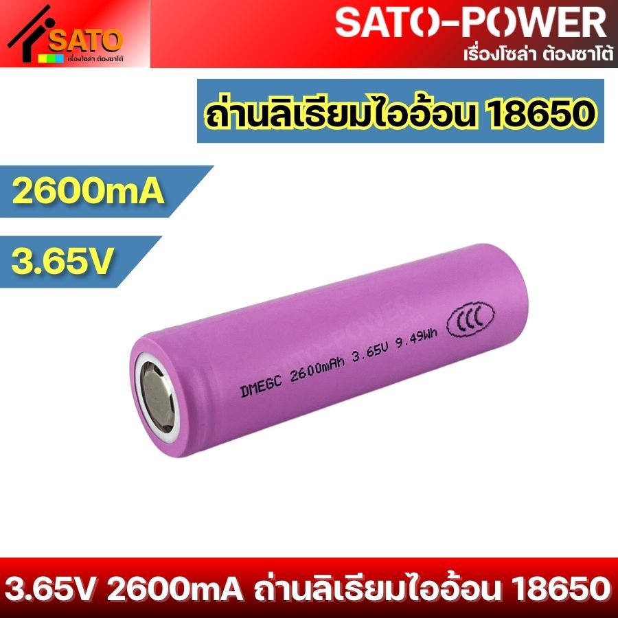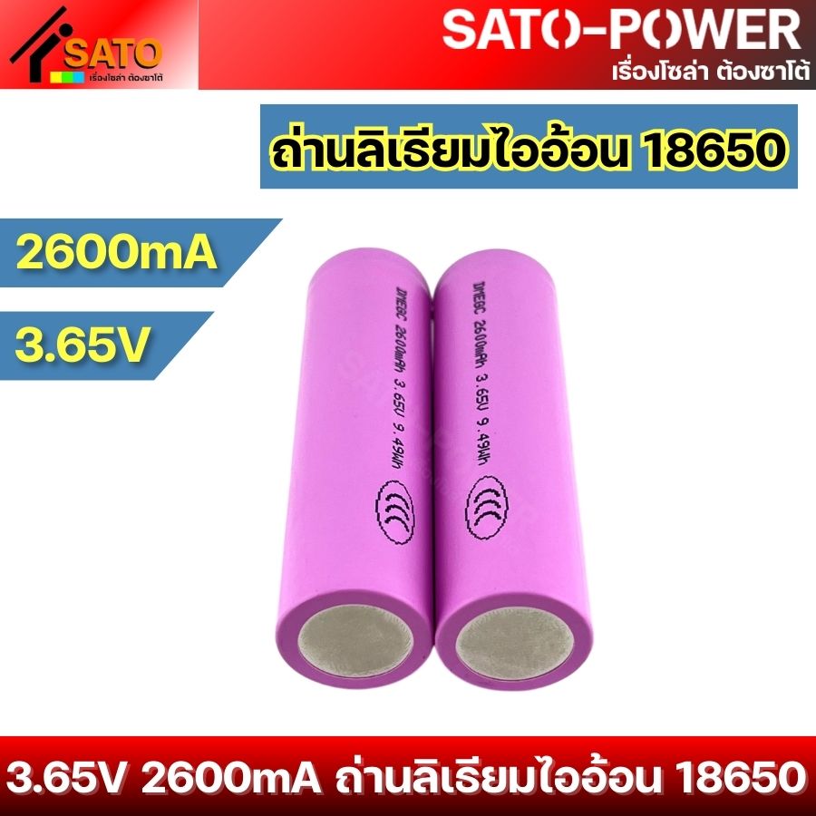 ถ่านแบตเตอรี่ลิเธียม 18650 ขนาด 3.65V 2600mA l Li-ion 18650 ถ่านลิเธียม