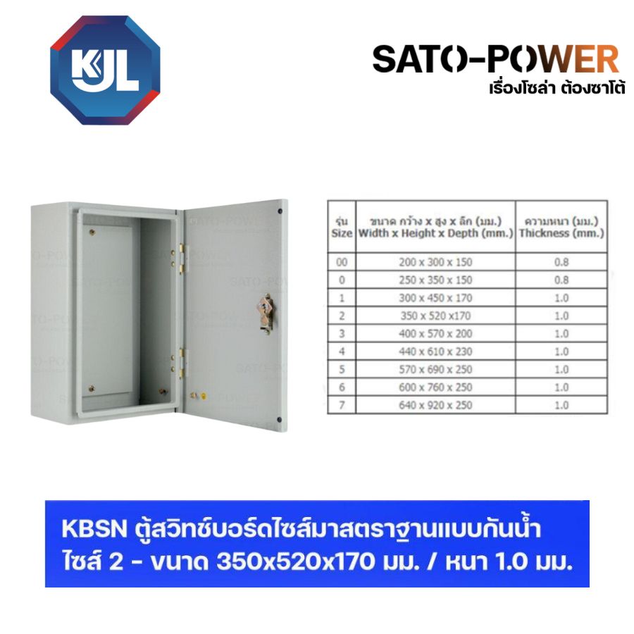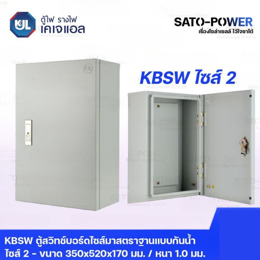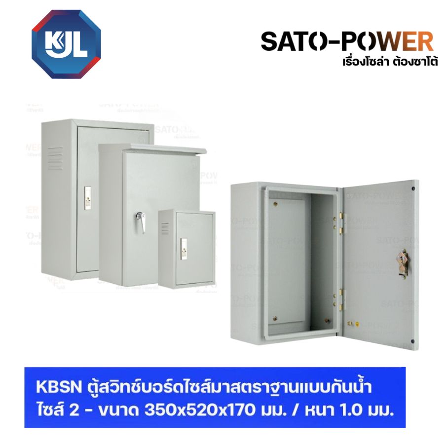 KJL ตู้ไฟ รางไฟ เคเจแอล | KBSN 9002 ตู้สวิทช์บอร์ดไซส์มาตราฐานแบบกันน้ำไม่มีหลังคา ไซส์ 2 - 350x520x170 มม. ตู้สวิทซ์บอร์ด ตู้กันน้ำ ตู้รางไฟ