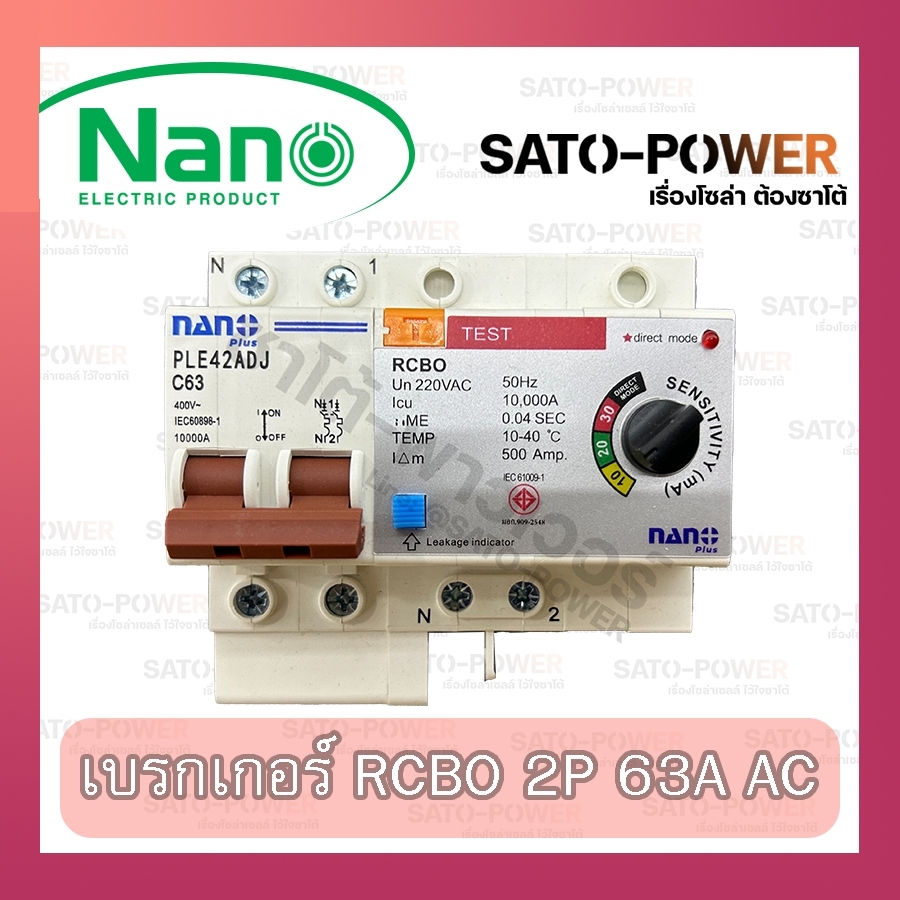 NANO RCBO 2P AC เบรกเกอร์กันดูด ป้องกันไฟรั่ว ป้องกันไฟเกิน ป้องกันกระเเสลัดวงจร ขนาด  32A , 40A , 50A , 63A