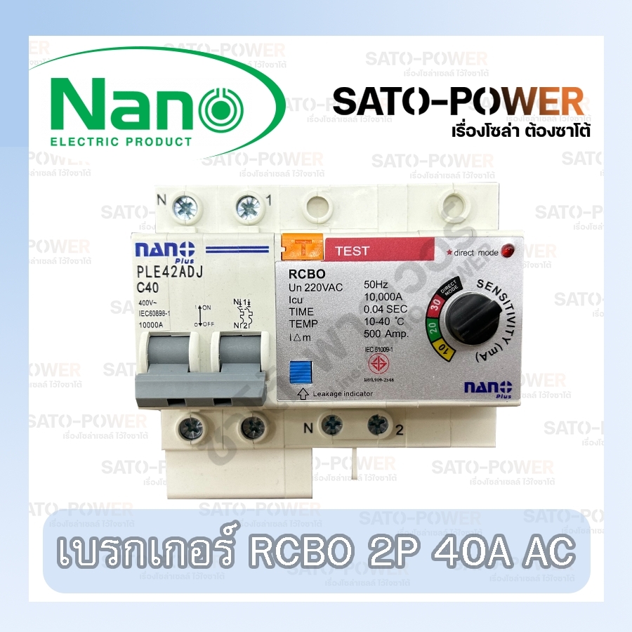 NANO RCBO 2P AC รุ่น PLE42ADJ เบรกเกอร์กันดูด ป้องกันไฟรั่ว ป้องกันไฟเกิน ป้องกันกระเเสลัดวงจร