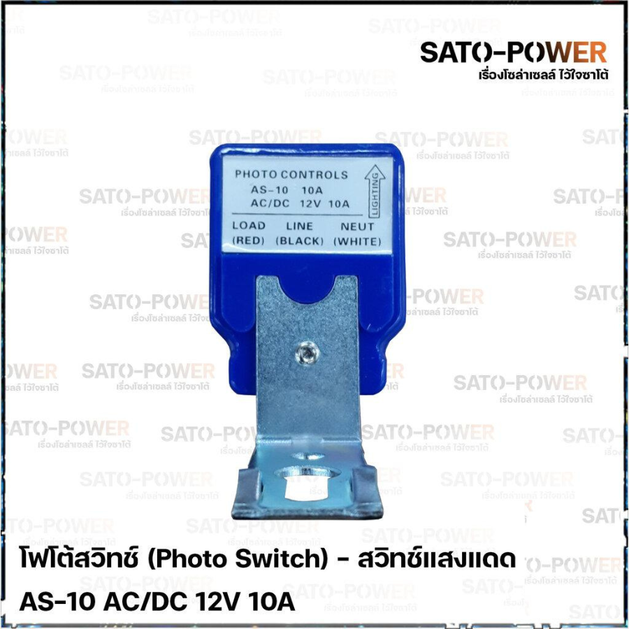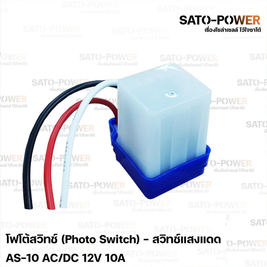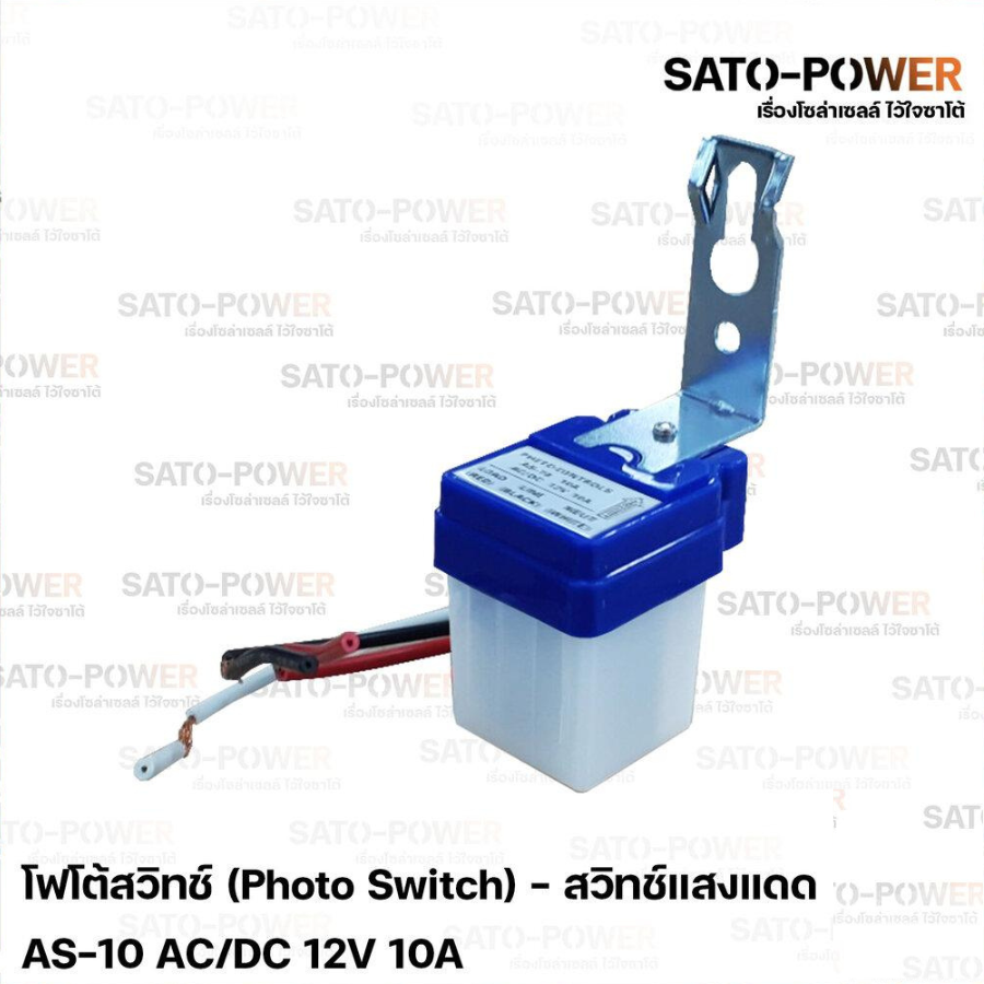 โฟโต้สวิทช์ (Photo Switch) 12V 10A - สวิทช์แสงแดด สวิตซ์แสง สวิต์แสงแดด เซนเซอร์แสง สวิตซ์ปิดเปิด สวิทซ์แสง 12 โวลท์ 10 แอมป์ ตำแหน่งของสวิตช์แสงแดดจะต้องอยู่เหนือหลอดไฟส่องสว่าง เพื่อไม่ให้แสงไปรบกวนระบบเซ็นเซอร์ อย่าติดตั้งสวิตช์แสงแดดในบริเวณที่มีสิ่งกีดขวาง เช่น ต้นไม้ หรืออาคาร ตรวจสอบสายไฟและอุปกรณ์ให้เรียบร้อยก่อนใช้งาน