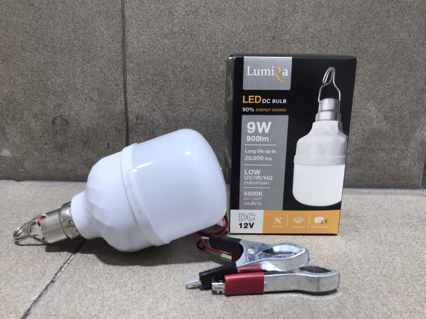 LUMIRA หลอดไฟ ลูมิร่า LED แสงสีขาว 9 วัตต์ หลอดไฟสายคีบแบตเตอรี่ 12V 9W หลอดไฟแอลอีดี แสงสีขาว ไม่มีสวิตซ์ light bulb LED 9 วัตต์