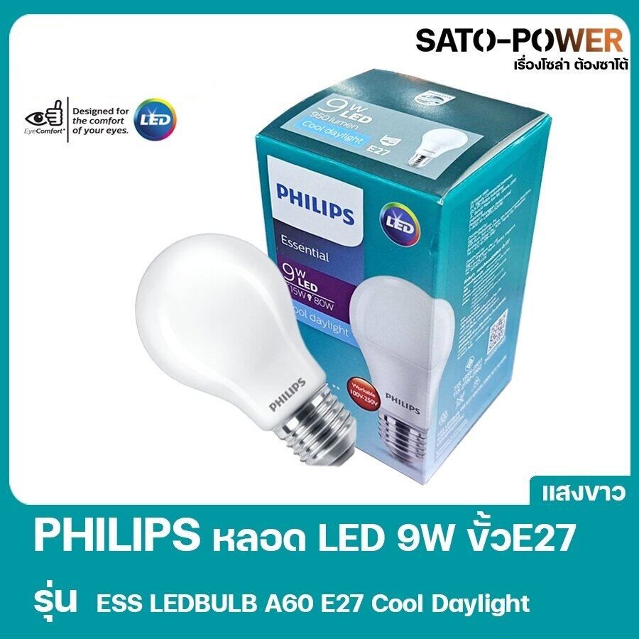 PHILIPS LED 9W ขั้ว E27 รุ่น ESS LEDBULB A60 E27 Cool Daylight หลอดไฟเเอลอีดี 9วัตต์ ขั้ว อี27 หลอดไฟประหยัดพลังงาน เเสงขาวโทนอุ่น