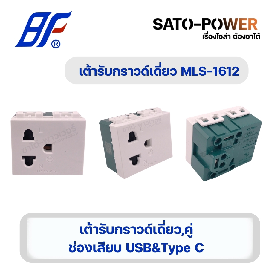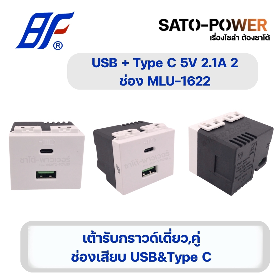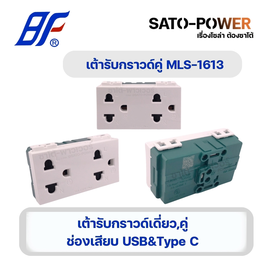 BF เต้ารับคู่ 3ขา ปลั๊กกราวด์คู่ พร้อมม่านนิรภัย | เต้ารับกราวด์เดี่ยว,คู่ ช่องเสียบ USB&Type C | ติดตั้งง่าย ทนทาน ขนาดมาตรฐาน สีขาว
