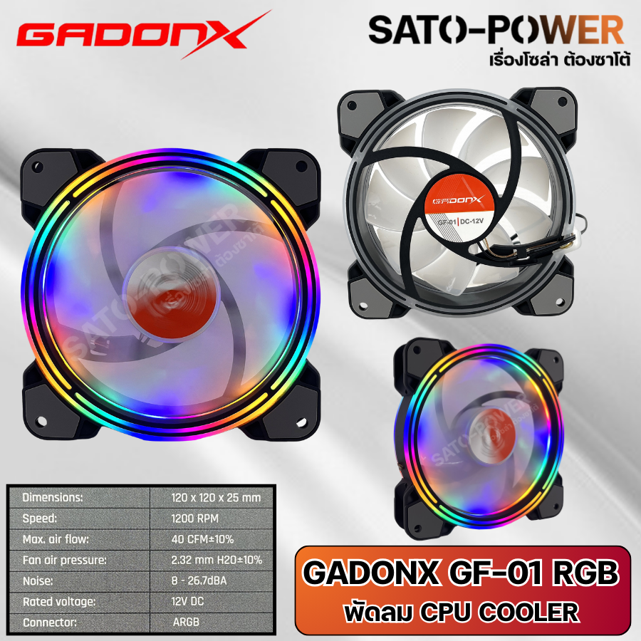 GADONX GF-01 พัดลม CPU COOLER RGB 120MM 12V 9 ใบพัด พัดลมเคส พัดลมมีไฟ พัดลมไฟRGB พัดลม120มม..