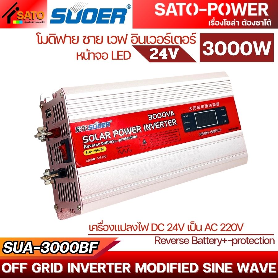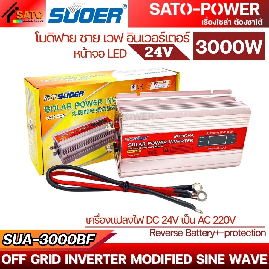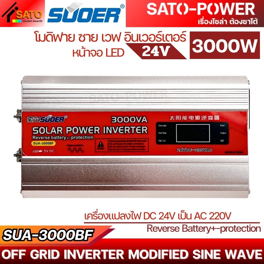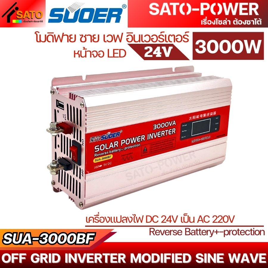 SUOER Inverter Modified Sine Wave รุ่น SUA-3000BF อินเวอร์เตอร์ | 24V 3000W มีหน้าจอ | เครื่องแปลงไฟ DC 24V เป็น AC 220V