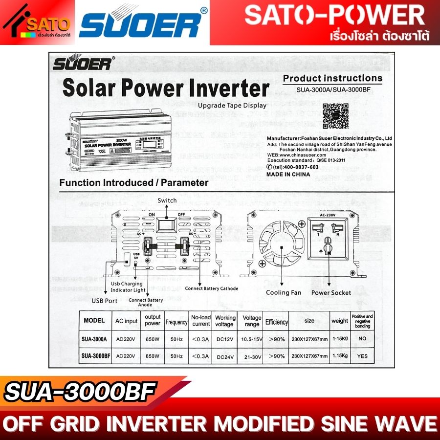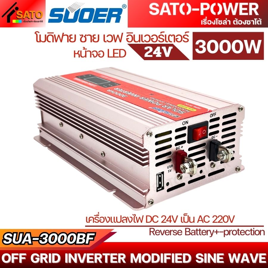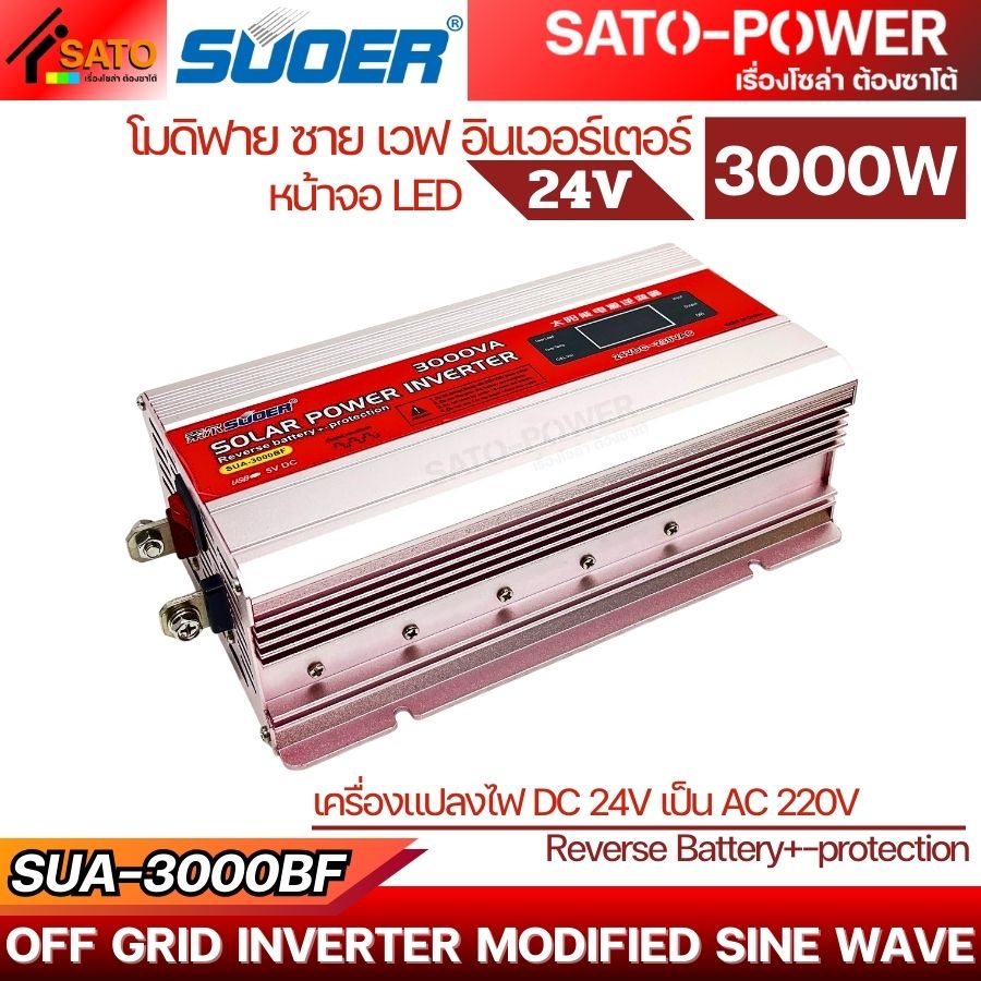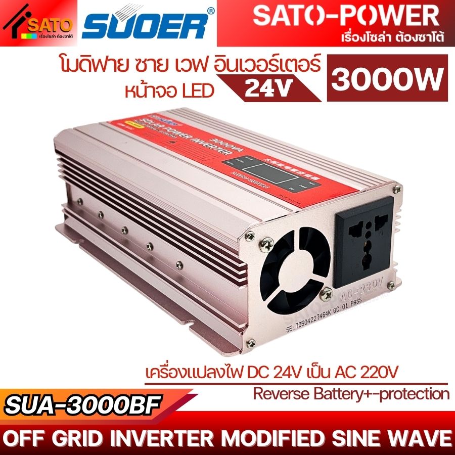 SUOER Inverter Modified Sine Wave รุ่น SUA-3000BF อินเวอร์เตอร์ | 24V 3000W มีหน้าจอ | เครื่องแปลงไฟ DC 24V เป็น AC 220V