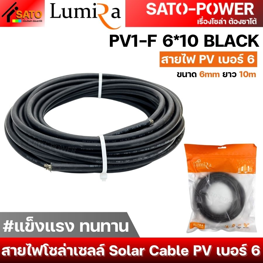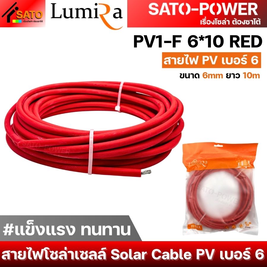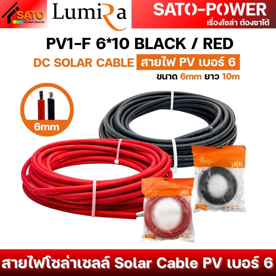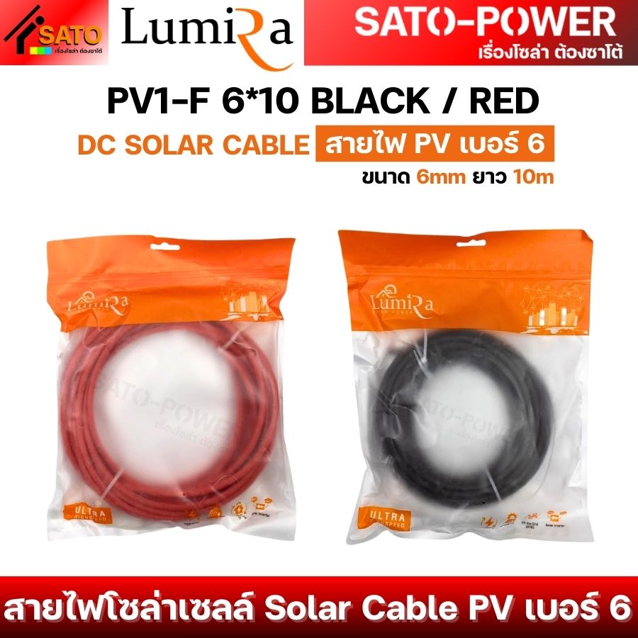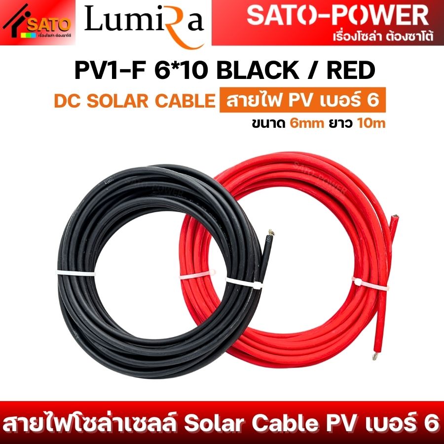 LUMIRA สายไฟโซล่าเซลล์ PV1-F 6x10 ยาว 10 เมตร | สายไฟ PV เบอร์ 6 BLACK / RED | DC SOLAR CABLE ขนาด 6mm ยาว 10m