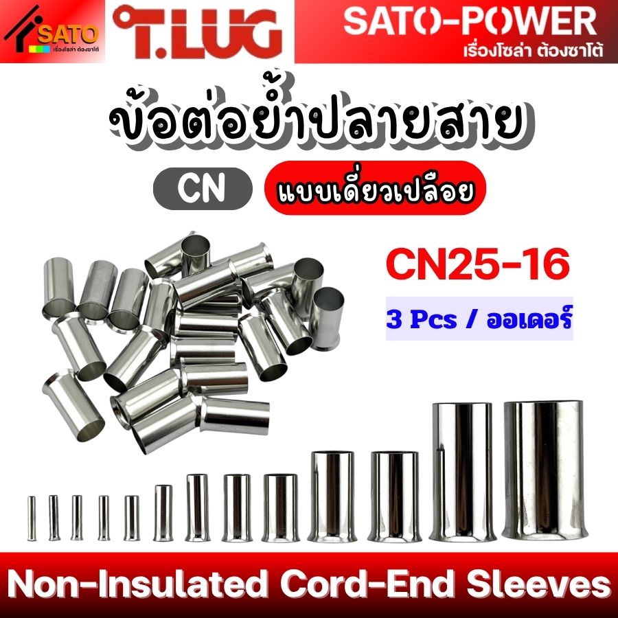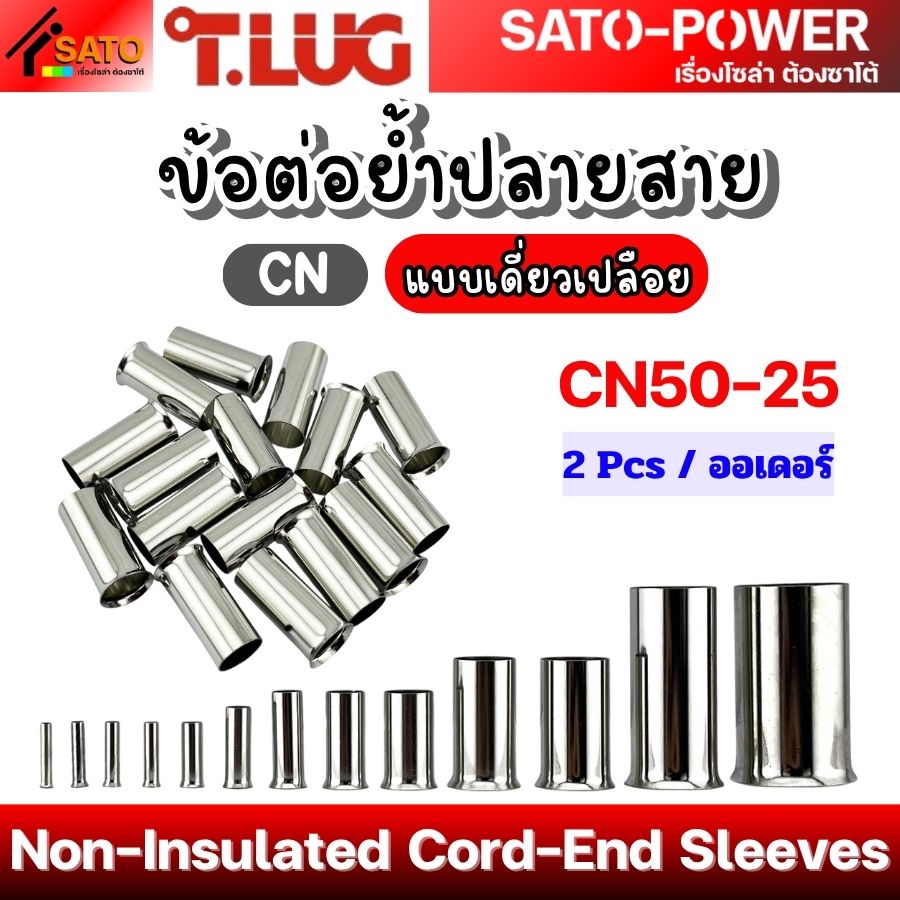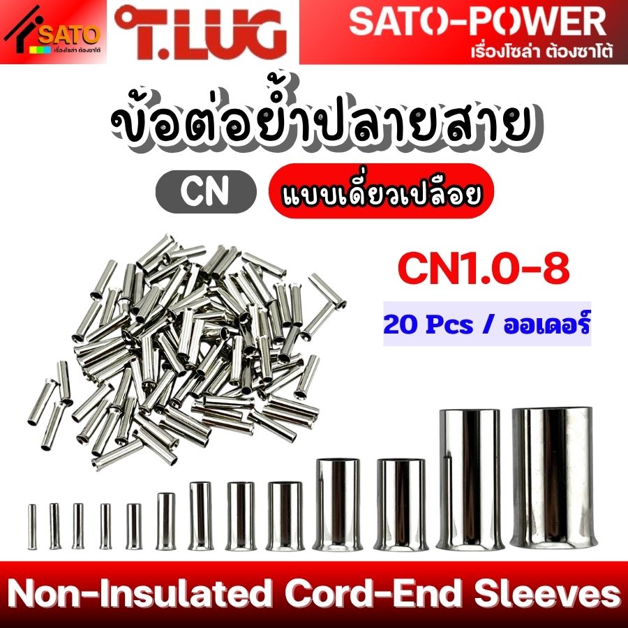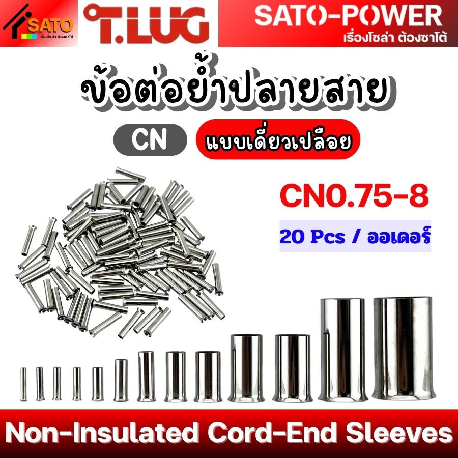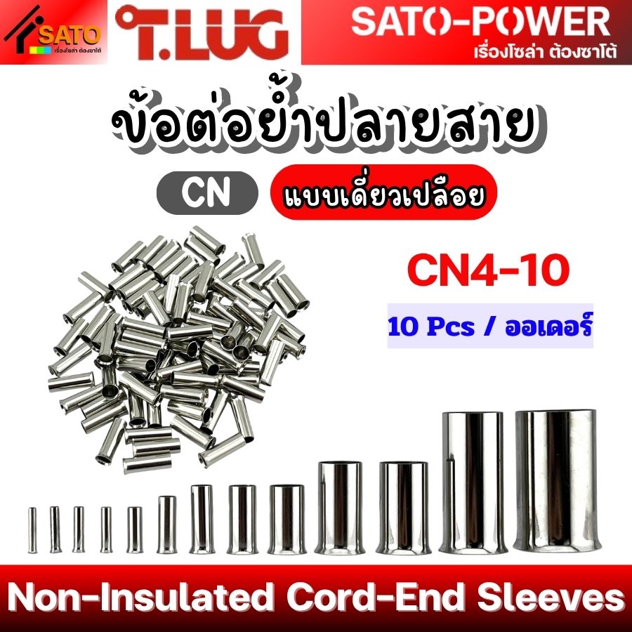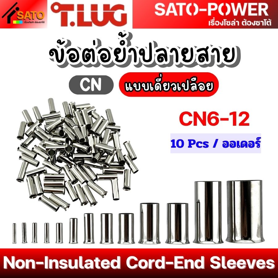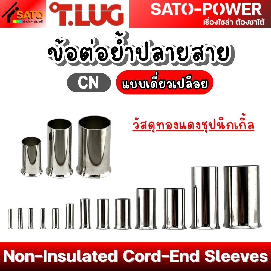 T-LUG ข้อต่อย้ำปลายสาย เเบบเดี่ยวเปลือย รุ่น CN | Non-Insulated Cord-End Sleeves | วัสดุทองแดงชุปนิกเกิ้ล