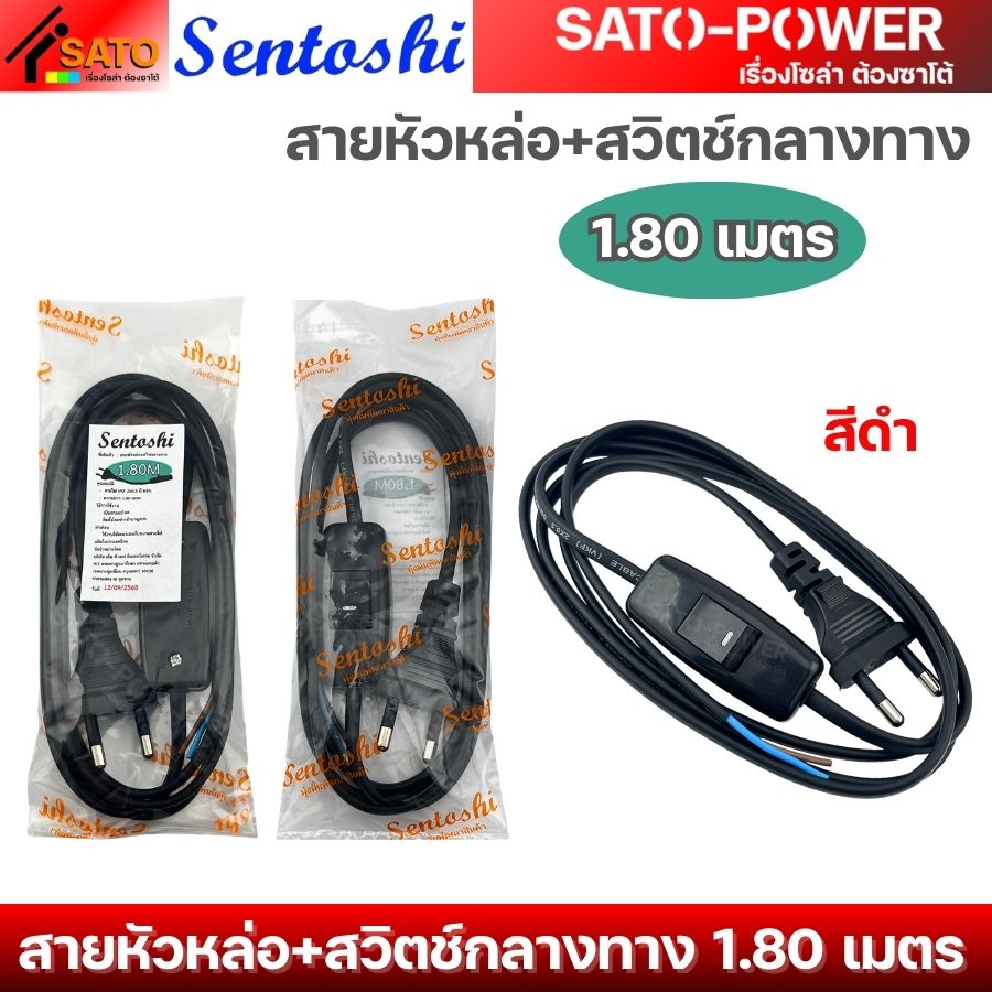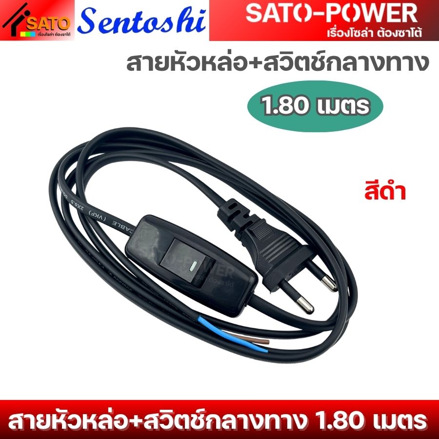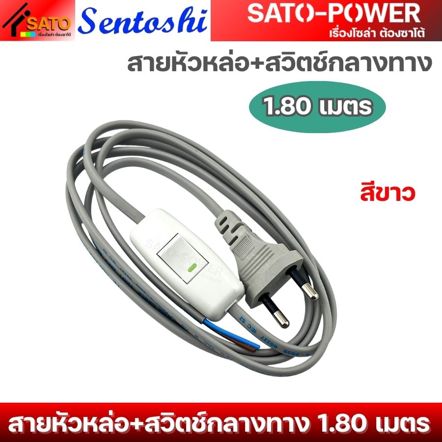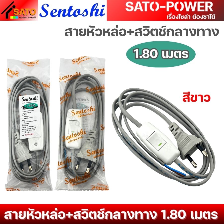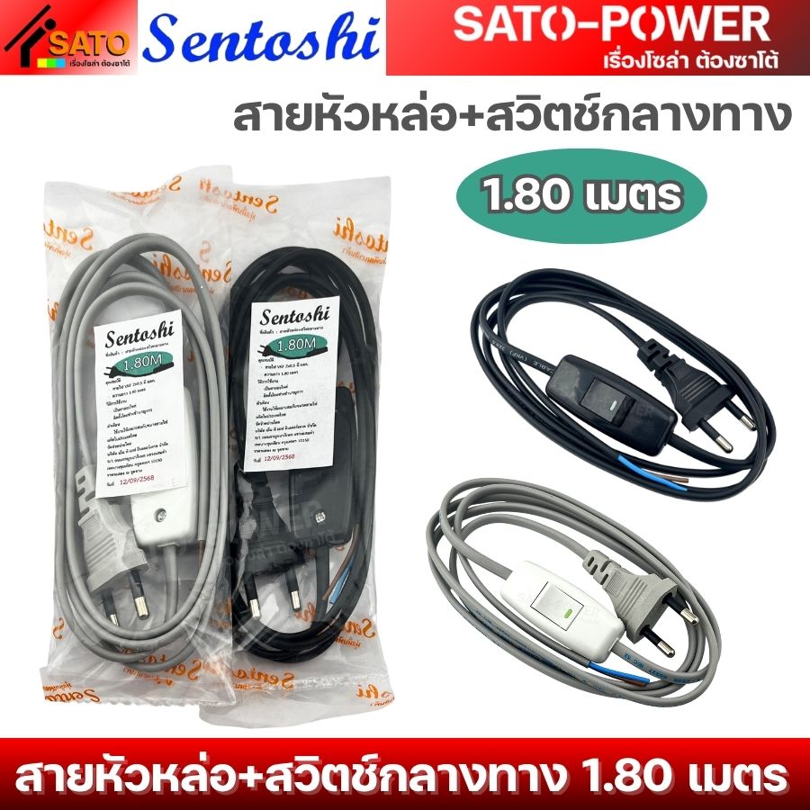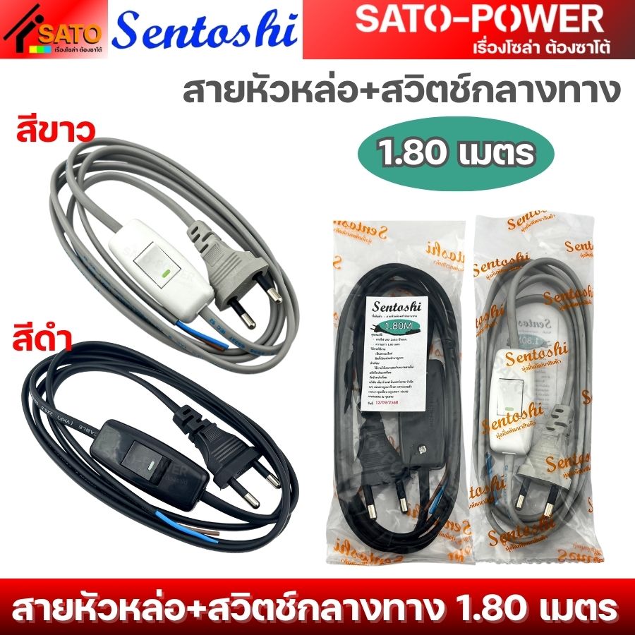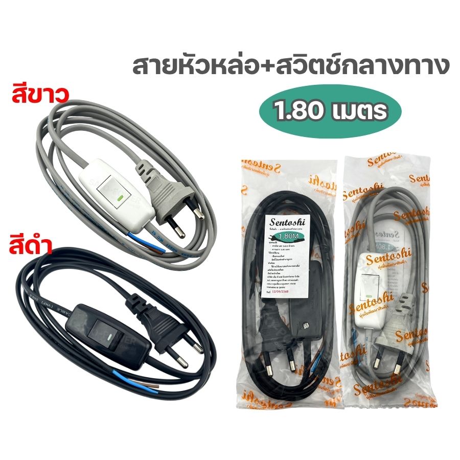 SENTOSHI สายหัวหล่อ + สวิตช์กลางทาง | สาย VKF 2x0.5 | ยาว 1.80 เมตร สีขาว สีดำ