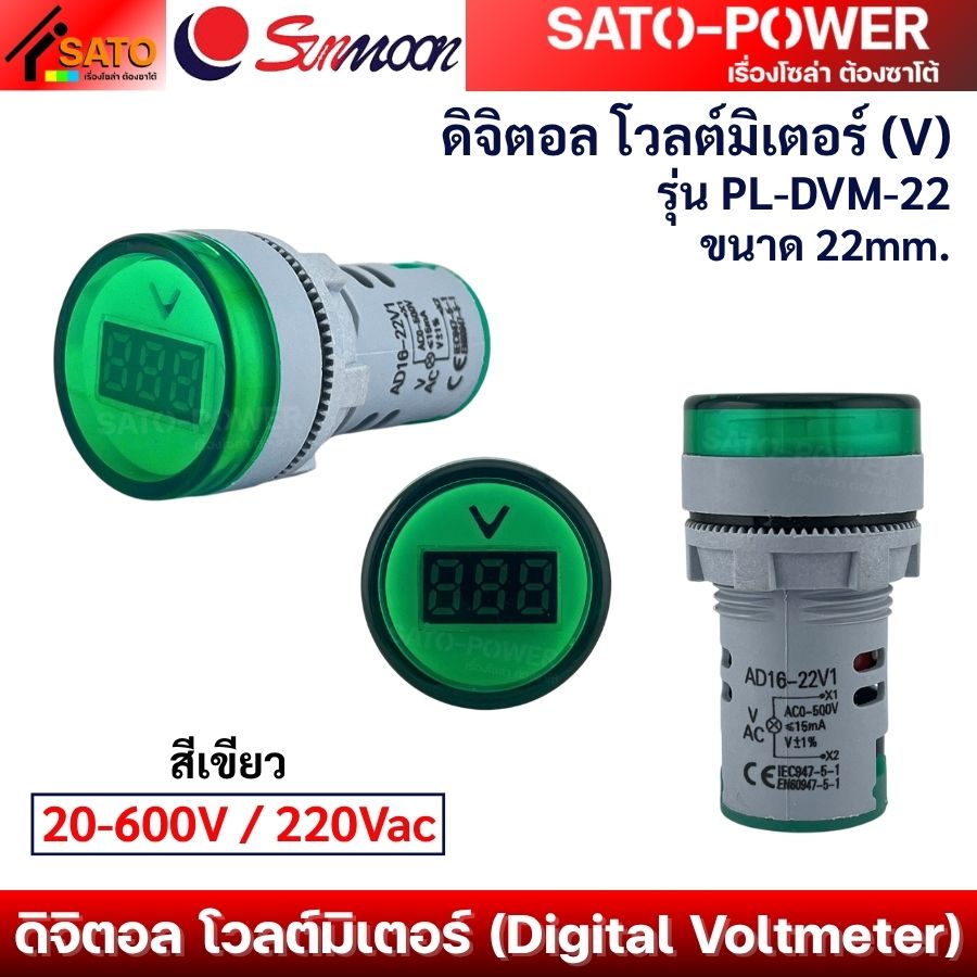 - SUNMOON โวลต์มิเตอร์ ขนาด 22mm.