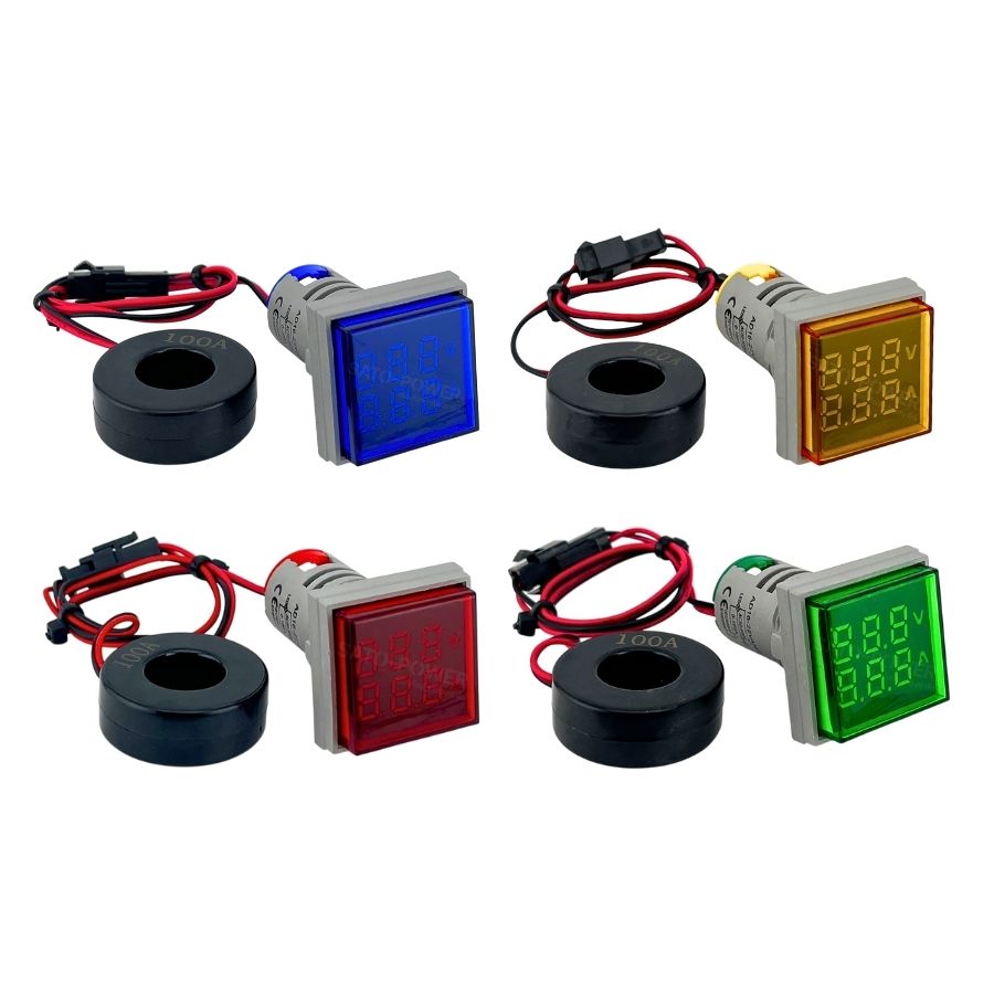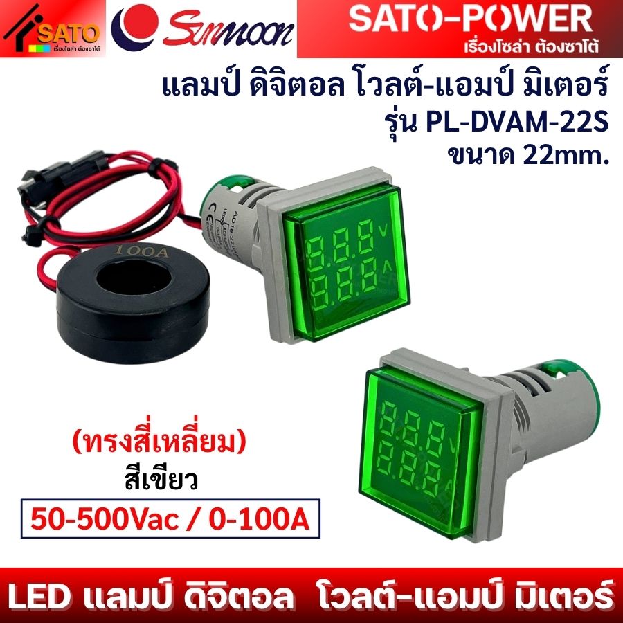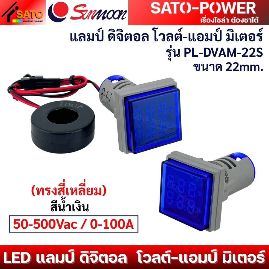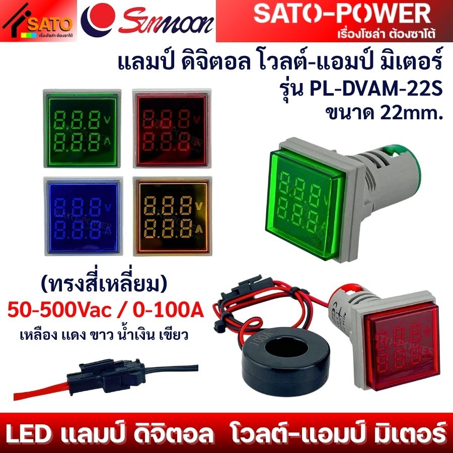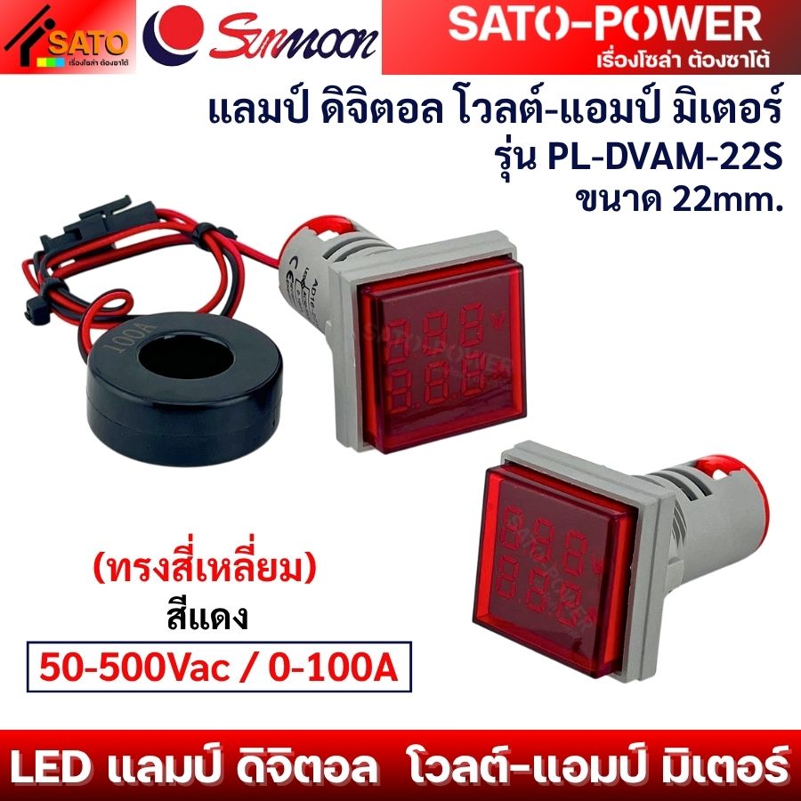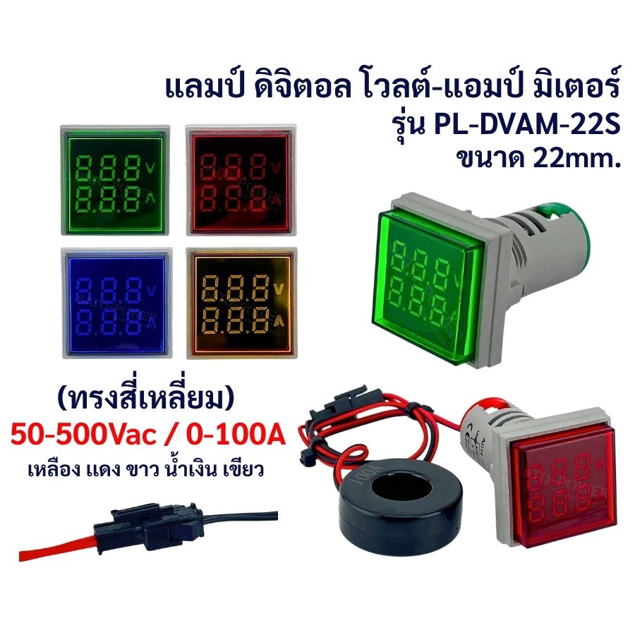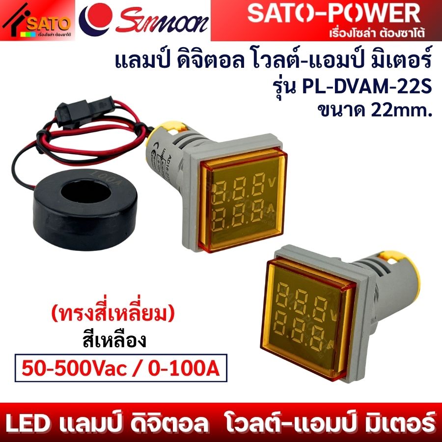 SUNMOON แลมป์ ดิจิตอล โวลต์-แอมป์ มิเตอร์ (หน้าเหลี่ยม) LED 50-500Vac / 0-100A ขนาด 22mm. รุ่น PL-DVAM-22S