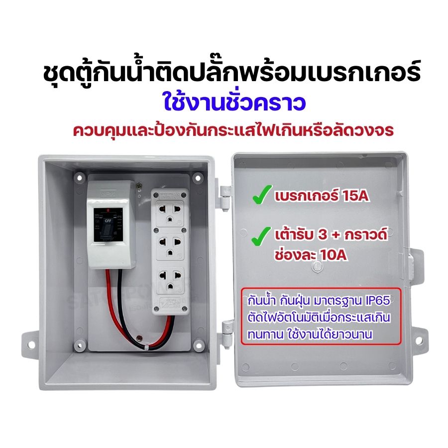 ชุดตู้กันน้ำติดปลั๊กพร้อมเบรกเกอร์ ใช้งานชั่วคราว 15A | แบบประกอบสำเร็จ ตู้ปลั๊กกันน้ำ