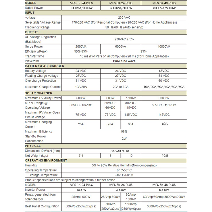 Suoer Hybrid Solar inverter MPS 48V 5000W | MPS-5K-PLUS | อินเวอร์เตอร์ไฮบริดจ์ โซลาร์ อินเวอร์เตอร์ | SATO-POWER